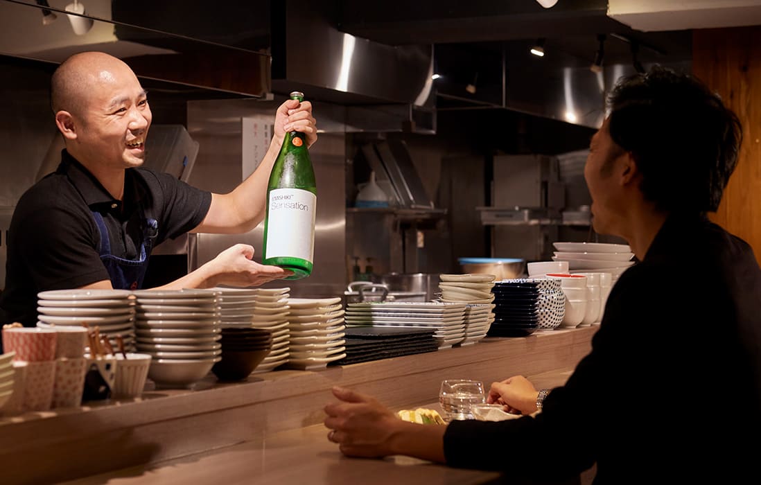 気ままな一人飲みの際は、オープンキッチンの広いカウンター席へ。周りを気にせず、しっぽりとお酒を傾けるもよし。一品料理を味わいながら、話好きの料理長と会話に花を咲かせるもよし。時間を忘れて、思い思いの粋なひとときをお過ごしください。